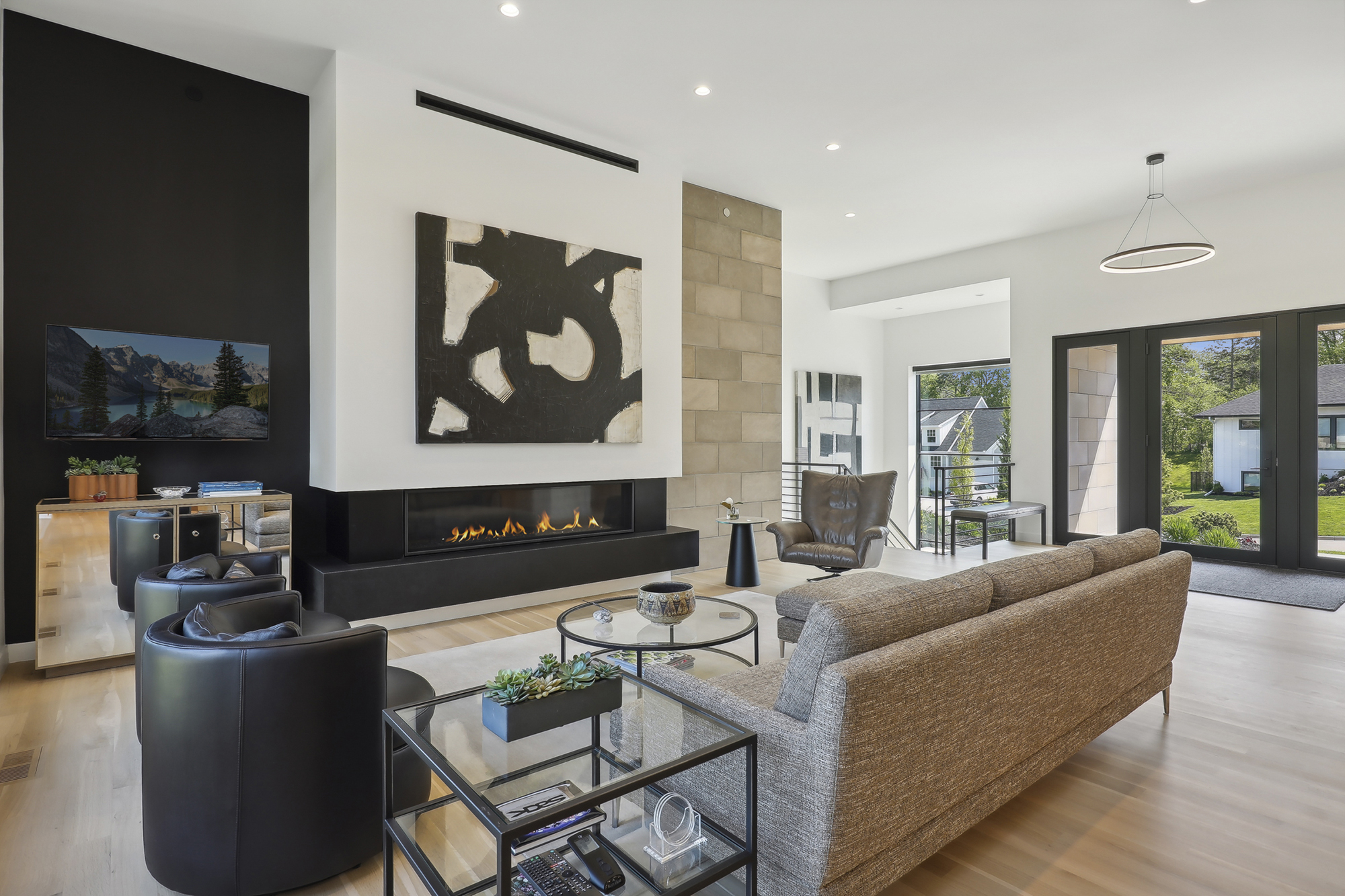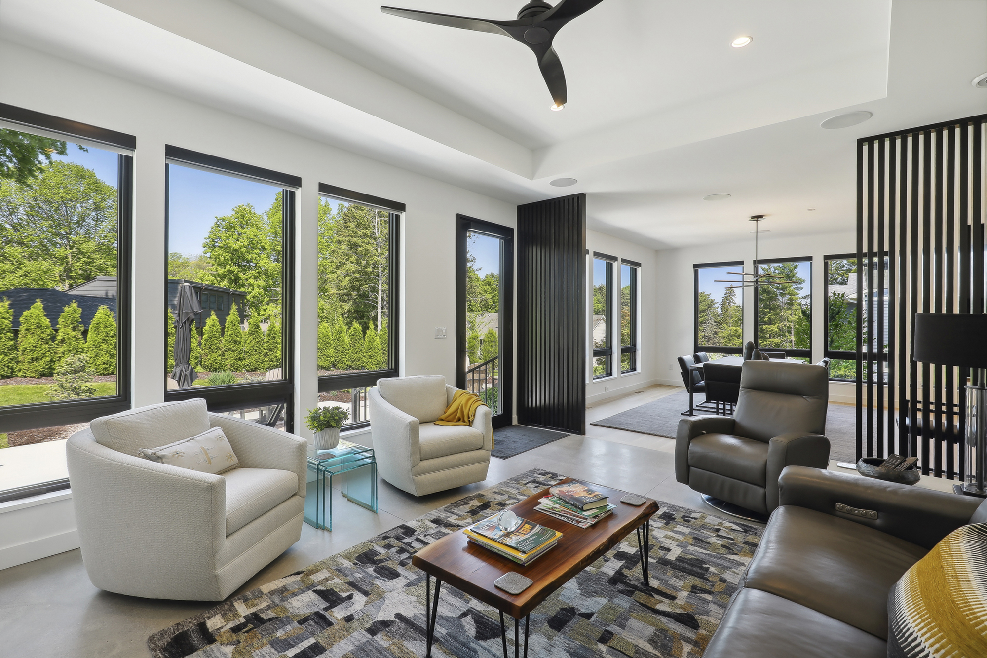 The sunroom is amazing with heated concrete floors, fireplace, and an expansive wall of windows! The lower level boasts a grand family room with a stylish fireplace, built in cabinetry, and ample space for entertaining.