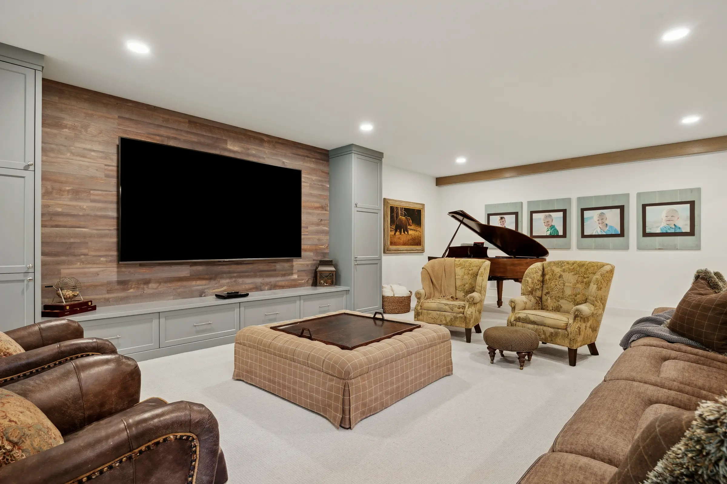 This is a home built for living well. The family loves to cook, entertain, and stay active, and the layout reflects that with open, flexible spaces that feel both inviting and functional. Warm materials and layered details bring personality to every corner from the hand-finished stone fireplace surrounds to v-groove paneling and shiplap accents throughout. Wallpaper adds character in unexpected places like the pantry ceiling, powder room, and laundry room.